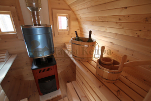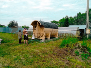 - Круглая баня-бочка 3,5 и 4,5 метра - раздевалка, парилка;