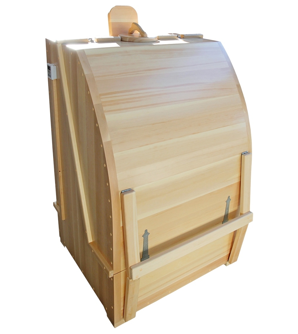 • Кедровая бочка (фитобочка) круглая «Классическая Эконом» Круглая фитобочка представляет собой мини парную, которую можно использовать не только в спа-салонах, но и дома. Бочка изготовлена из древесины кедра без отбора по сучкам, поэтому такая модель считается более доступной. Фитобочка оборудована откидными створками, дверцей и отверстием для головы. Во время парения человек сидит внутри кедровой бочки, а голова находится снаружи. Благодаря этому исключается возможность перегрева. Подлокотники из кедра, встроенные ручки на створках и двери делают эксплуатацию более удобной. Парение в фитобочке благотворно влияет на организм в целом: повышается иммунитет, выводятся шлаки и токсины, улучшается работа органов тела и состояние кожи.