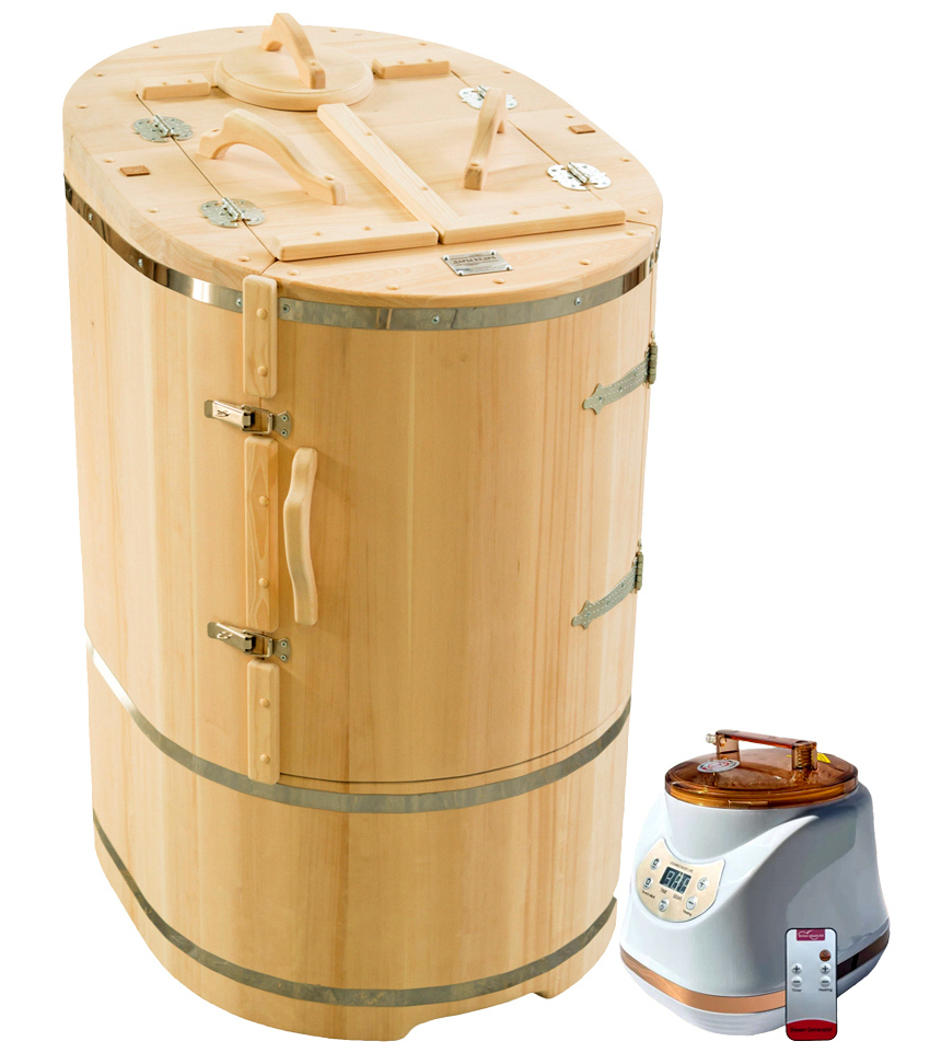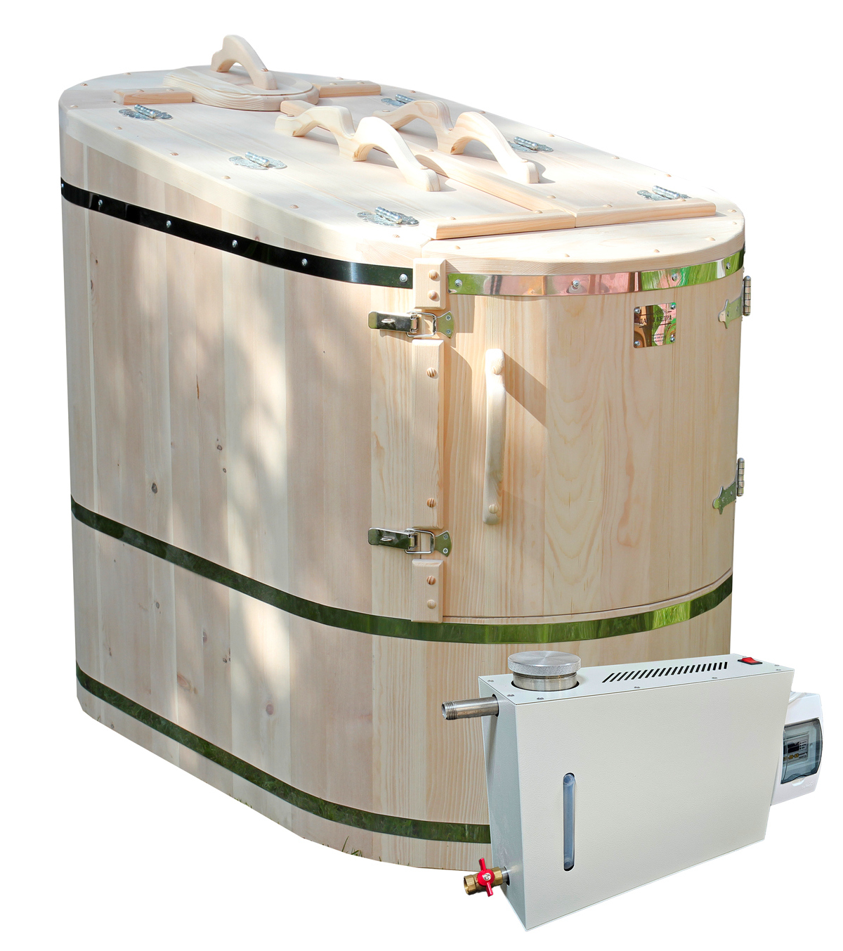 • Готовый комплект «Оптима»: кедровая бочка с парогенератором + био-защита изнутри и снаружи Готовый комплект - это полностью укомплектованный набор с фитобочкой для процедур парения. Круглая модель наиболее компактна и мобильна. Толщина стенок составляет 40-45 мм, что позволяет увеличить срок службы изделия. Бочка оборудована откидными створками, дверцей и отверстием для головы. Верхний скос делает положение головы более комфортным и улучшает обзор. Во время парения человек сидит внутри кедровой бочки, а голова находится снаружи. Благодаря этому исключается возможность перегрева. Подлокотники из кедра, встроенные ручки на створках и двери делают эксплуатацию более удобной. Парение в фитобочке благотворно влияет на организм в целом: повышается иммунитет, выводятся шлаки и токсины, улучшается работа органов тела и состояние кожи.