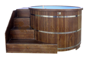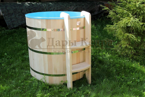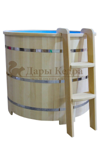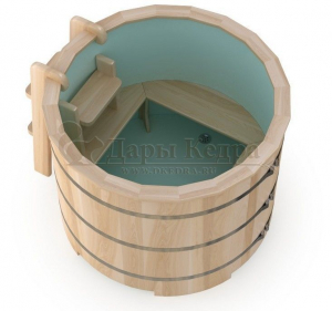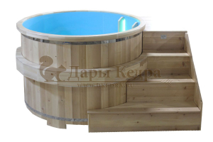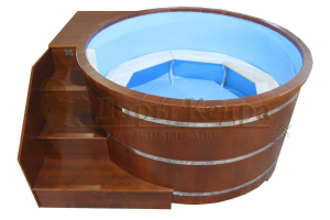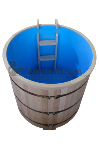 Это емкость для воды с пластиковой чашей. Купель предназначена для отдыха и охлаждения тела после процедур парения. Благодаря круглой форме, хорошо впишется в любое помещение. Так же подойдет для установки на открытом воздухе. Для удобства пользования круглая купель с пластиковой вставкой оснащена лавочками, приставной и внутренней лестницей из кедра.