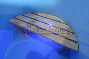Эффектная подсветка, посредством встроенной, влагозащищённой светодиодной ленты класса IP68. Идеально подходит для круглых купелей. Источник света скрыт от глаз, яркость освещения и цвет можно менять с пульта на расстоянии до 5 метров. Также есть автоматический режим плавной смены цветов, похожий на северное сияние. Хотите удивить близких и друзей? Тогда это ваш вариант!