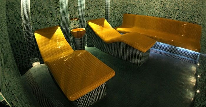 1. Принципы обустройства. Хаммам и финская сауна - это два принципиально разных вида парения. Во-первых, они отличаются внешним видом, принципом работы. Отделка хаммама внутри из камня или в классическом варианте – из мрамора. Лежанки («супа») тоже каменные. Они хорошо прогреваются и на них лежат, чтобы пропотеть, прогреть тело за счет пара, который поступает от парогенератора, расположенного в другом помещении. Горячий пар проходит по трубам, находящимся внутри пола и стен. Чтобы организовать пространство для парения в виде хаммама потребуются серьезные вложения как на отделку, так и на оснащение трубами, парогенераторами для равномерного распределения пара. Обустройство финской сауны в этом плане экономичнее, привычнее. Отделка парной - как правило, из древесины кедра.